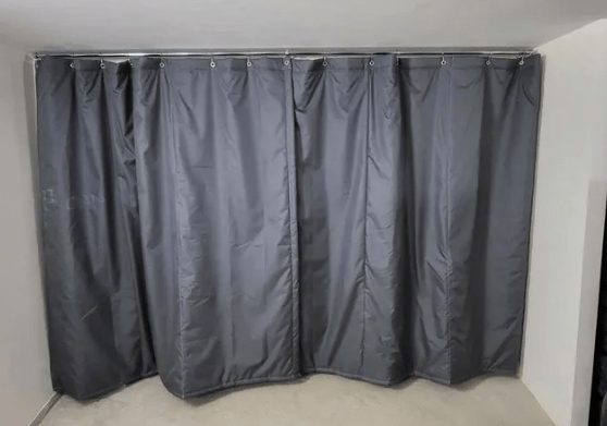 Шторы в гараж шьем из двух слоев Оксфорд с утеплителем внутри, что обеспечивает хорошую теплоизоляцию.